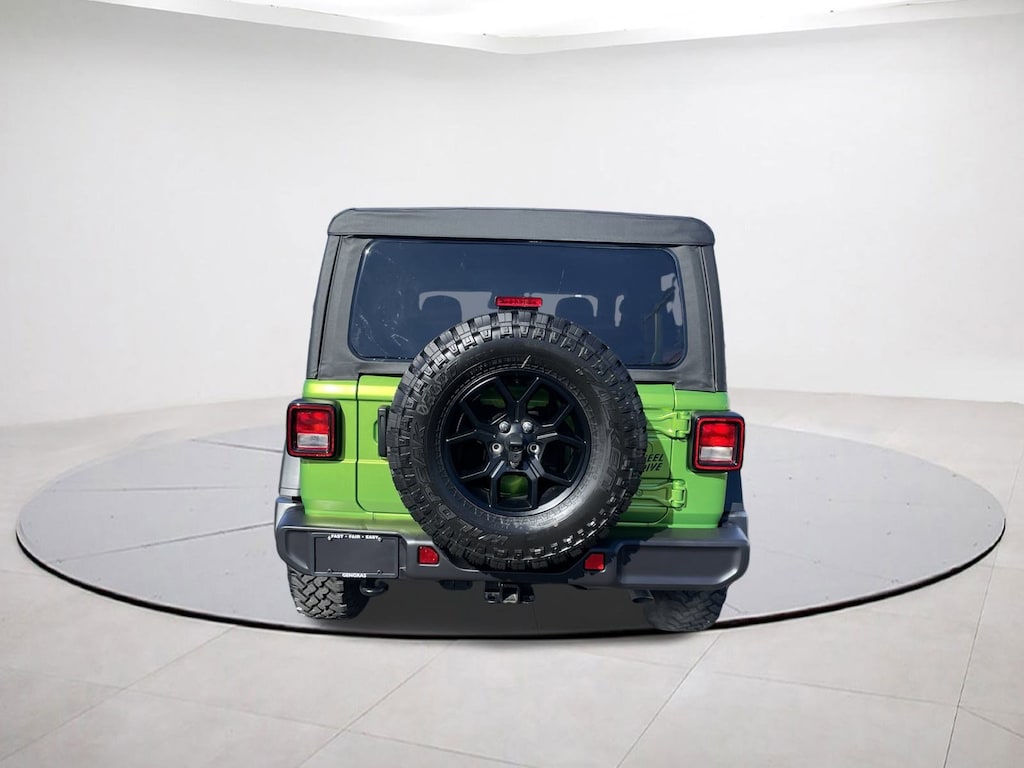 Certified. 4-Wheel Drive Swing Gate Decal, 4.10 Rear Axle Ratio, 7 & 4 Pin Wiring Harness, 97 MPH Vehicle Max Speed Calibration, Advanced Brake Assist, Apple CarPlay/Android Auto, Automatic Headlamps, Auxiliary Switches, Black Grille, Class II Receiver Hitch, Conventional Differential Front Axle, Corning Gorilla Glass, Dana M210 Wide HD Tube Front Axle, Dana M220 Wide Rear Axle, Daytime Running Lamps LED Accents, Deep Tint Sunscreen Windows, E-Locker Rear Axle, Enhanced Adaptive Cruise Control, Front LED Fog Lamps, Full Speed Forward Collision Warning Plus, Injection Molded Black Rear Bumper, LED Premium Reflector Headlamps, Mold In Color Bumper w/Gloss Black, Molded in Color Rubicon Highline Flare, MOPAR All-Weather Floor Mats, Off-Road Plus Mode, Power Heated Mirrors, Premium Wrapped Steering Wheel, Quick Order Package 22W Willys, Security Alarm, Sun Visors w/Illuminated Vanity Mirrors, Wheels: 17" x 7.5" Painted Black, Willy's Suspension, Willys Hood Decal. Mojito Clearcoat 2025 Jeep Wrangler Willys 4WD 8-Speed Automatic 2.0L I4 DOHC