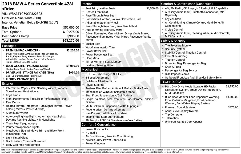 - Premium Package (Comfort Access Keyless Entry, Lumbar Support, Satellite Radio)