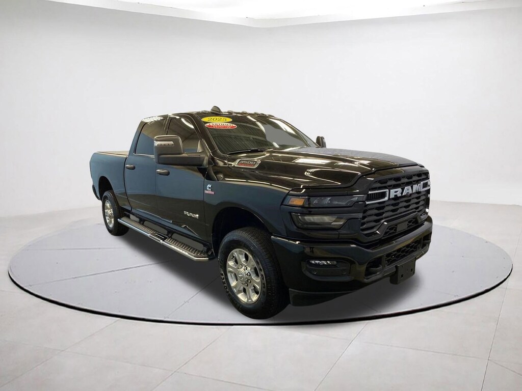 Certified. Diamond Black Crystal Pearlcoat 2025 Ram 3500 Big Horn 6.7L I6 8-Speed Automatic 4WD CARFAX One-Owner.